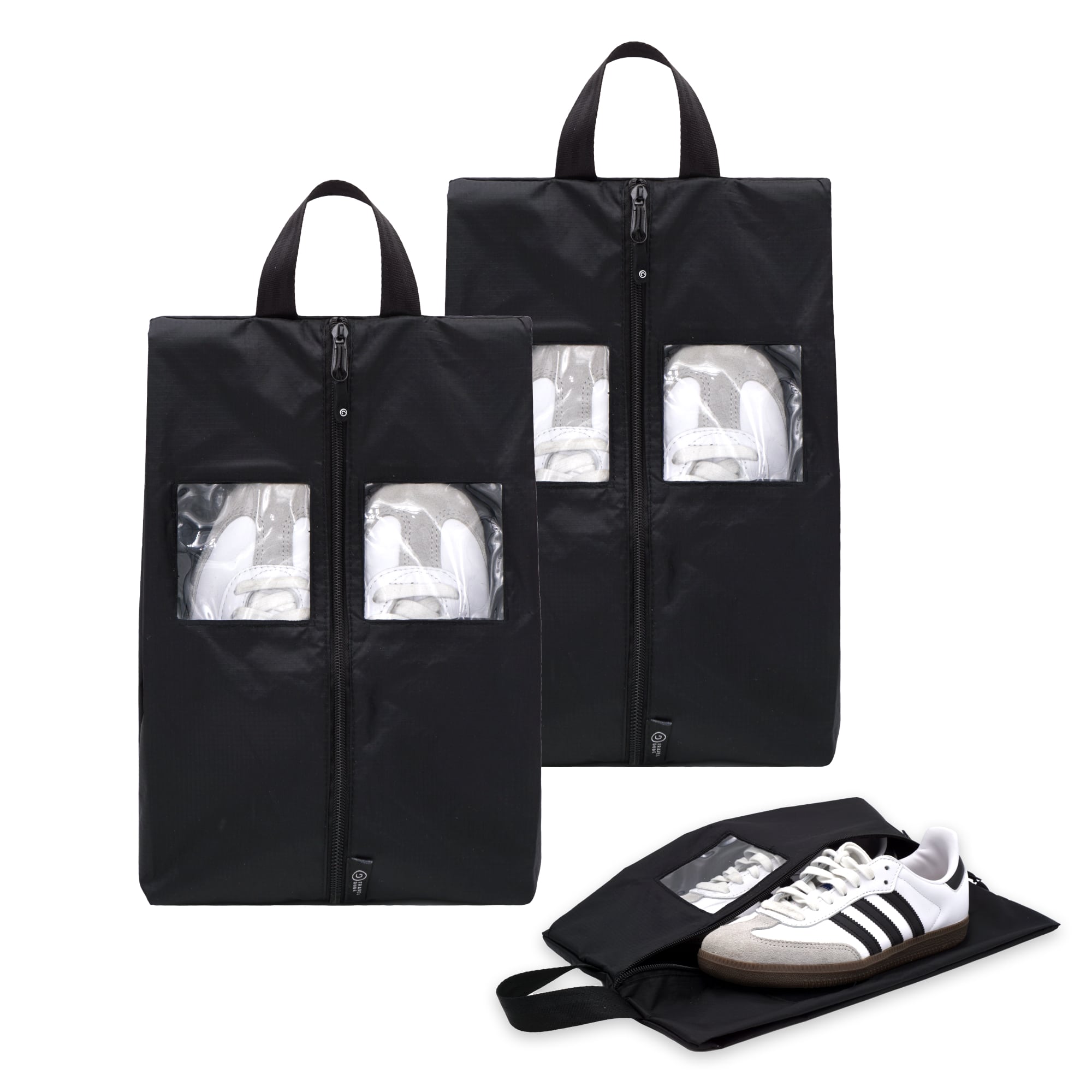 No more mixing shoes with clothes or reaching for a plastic bag! Our shoe bag set keeps your footwear organized and separate from everything else. Made from recycled plastic bottles, it's lightweight, water-resistant, and built to last.